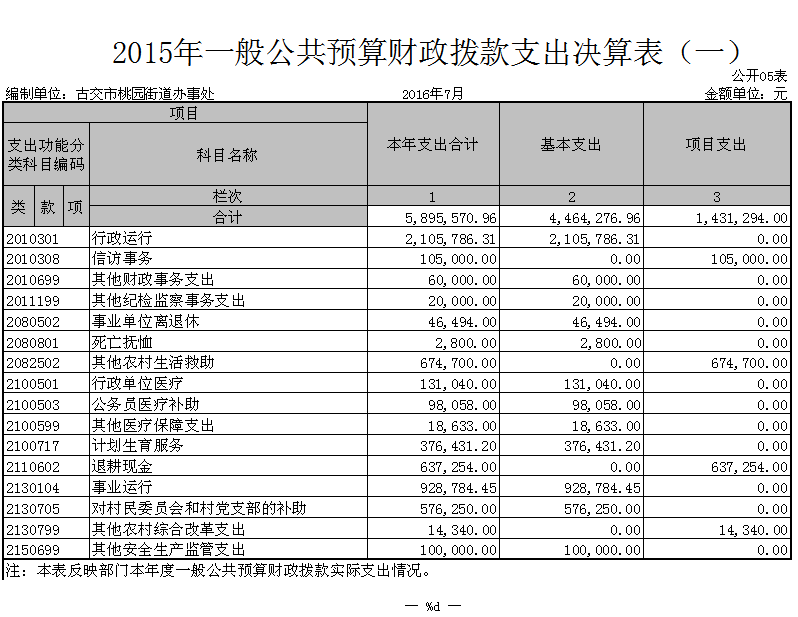2015年一般公共预算财政拨款支出决算表(一)