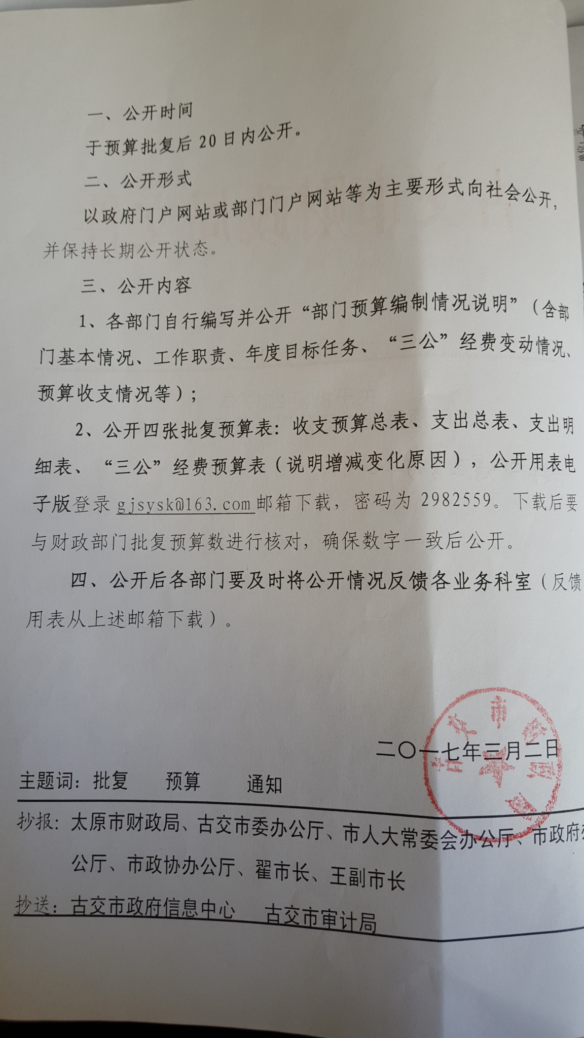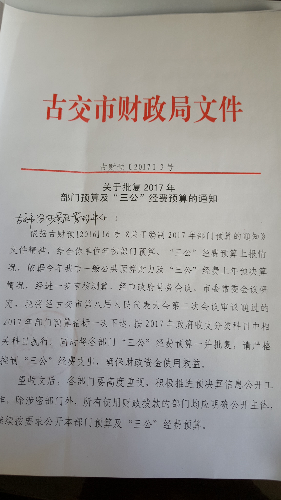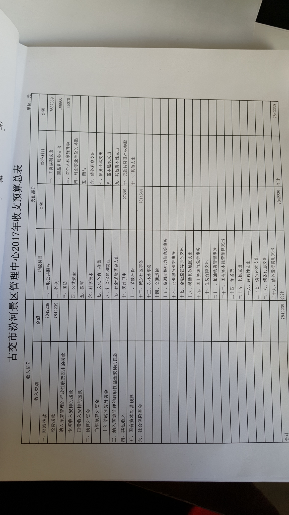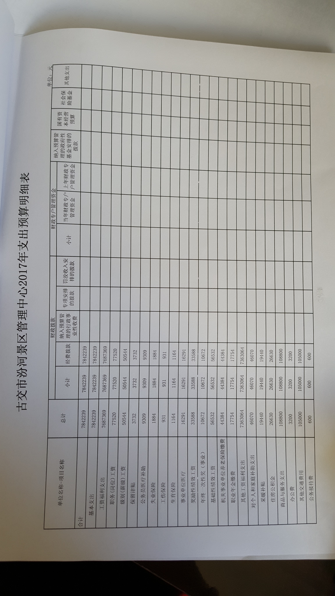 古交汾河景区管理中心2017年部门预算及“三公”经费
