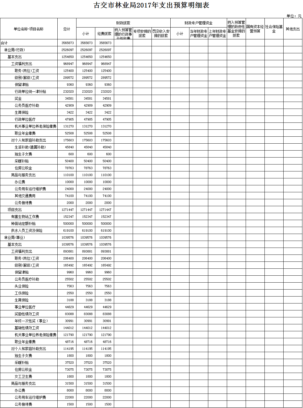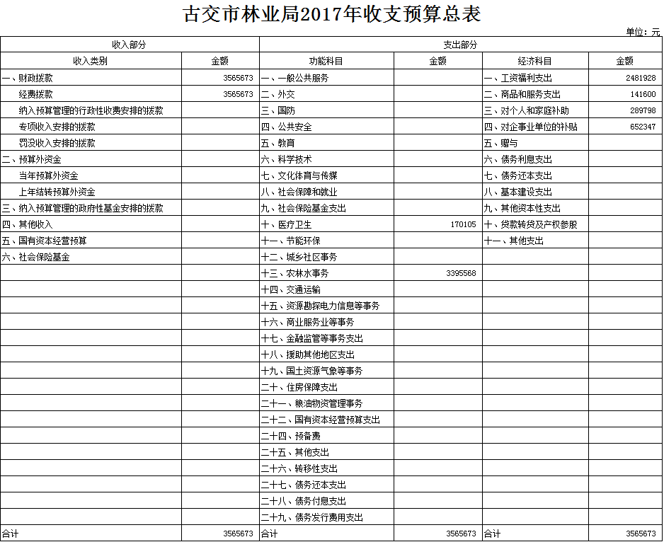 古交市林业局2017年预算